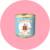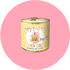 a small, freshly baked cake with a golden candle, made using traditional recipes and baked in a can. This unique treat can remain fresh for up to 18 months and is prepared with care.