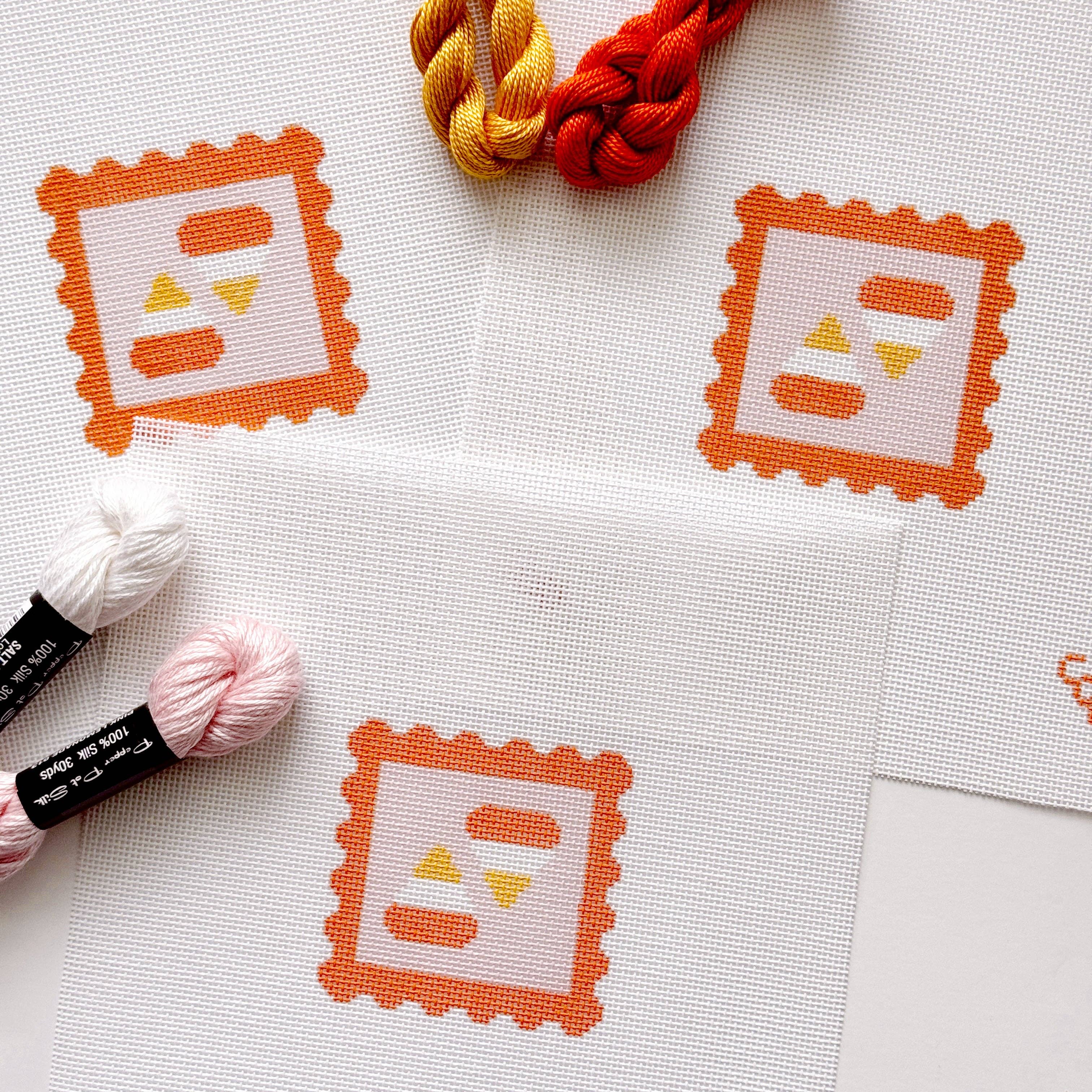 Sweet + spooky! This tiny candy corn “postage stamp” needlepoint canvas is perfect for your fall stitch pile.