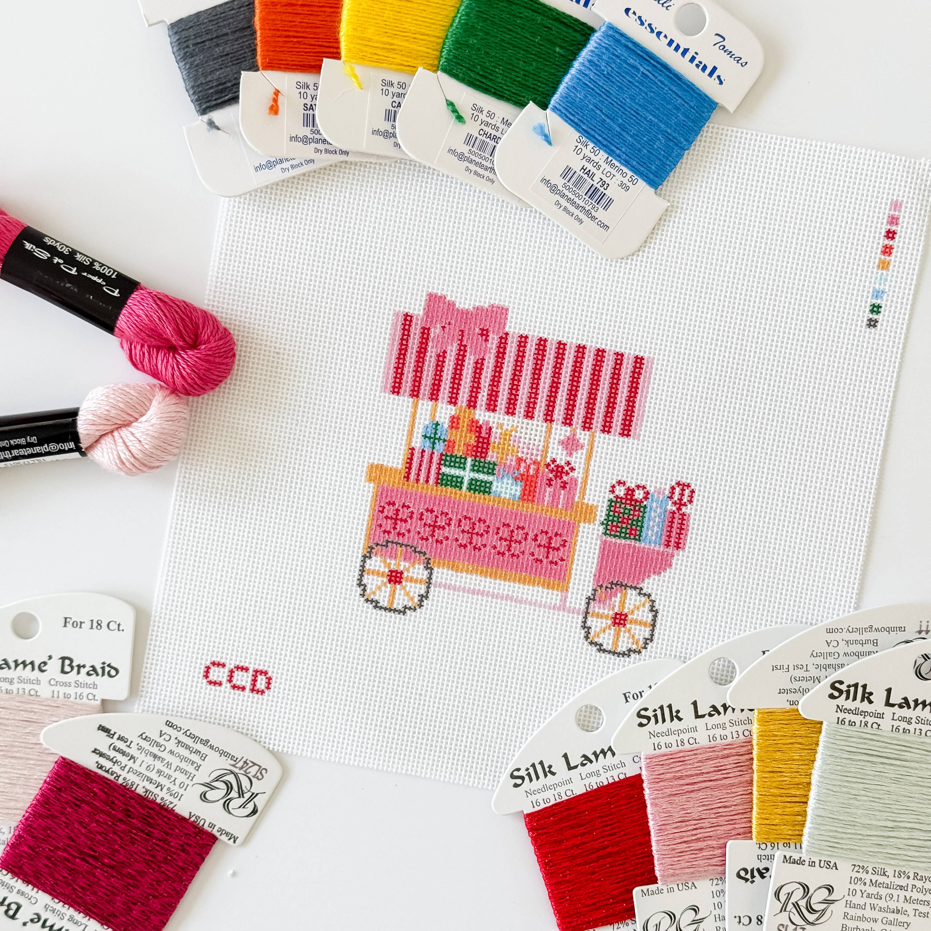 Christmas Trolley Cart Needlepoint Canvas 18 Mesh 4” Design