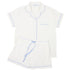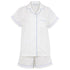 Short sleeve shorty pajama set. The top is a button-down style, short sleeve, breast pocket, with a notched collar and side slits.