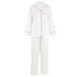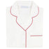 Long sleeve pajama set in a soft, midweight, 100% organic cotton poplin. Contrast-colored red piping and pant ties. Button-front top with a notched collar, chest pocket and side slits. The full-length pants feature an elastic waistband with drawstring and side-seam pockets. Machine wash warm, tumble dry low.
