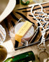 - A set of four, packaged in a sleek acrylic display box with a coordinating band