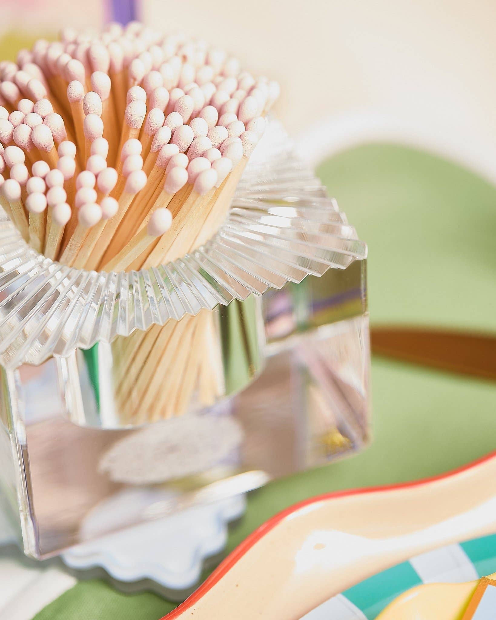 Get fired up with our Acrylic Match Striker! This acrylic match strike is the perfect accessory for your coffee table, desk, or any space that could use a little flair. It features a strike pad on the bottom and comes with 140 matches. Keep this baby ready for any occasion, let's get lit!