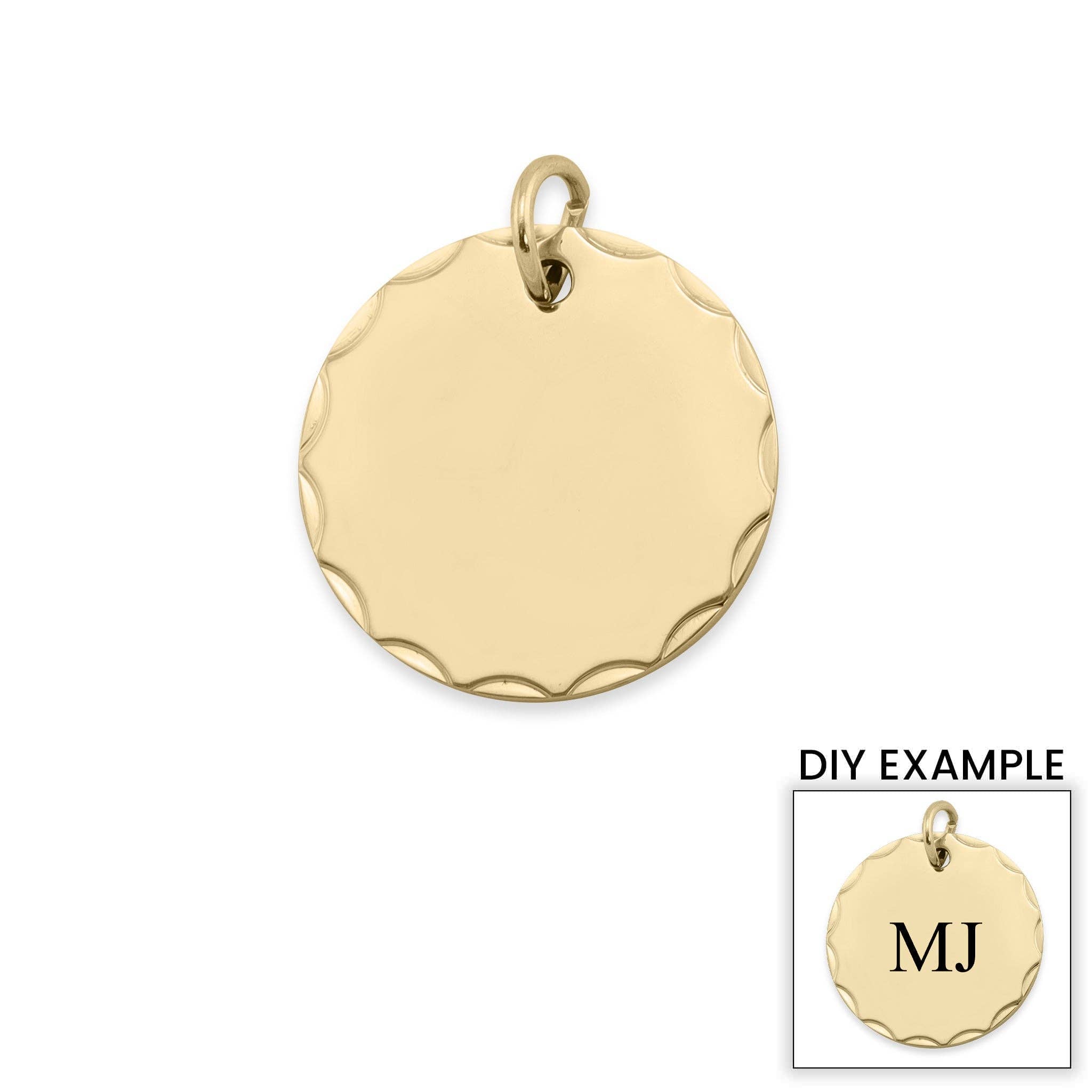 The Stainless Steel Grooved Round Pendant features a distinctively grooved edged design with a blank surface, making it an excellent choice for personalizing with engraving or stamping. Its understated style ensures it can be integrated into any look.