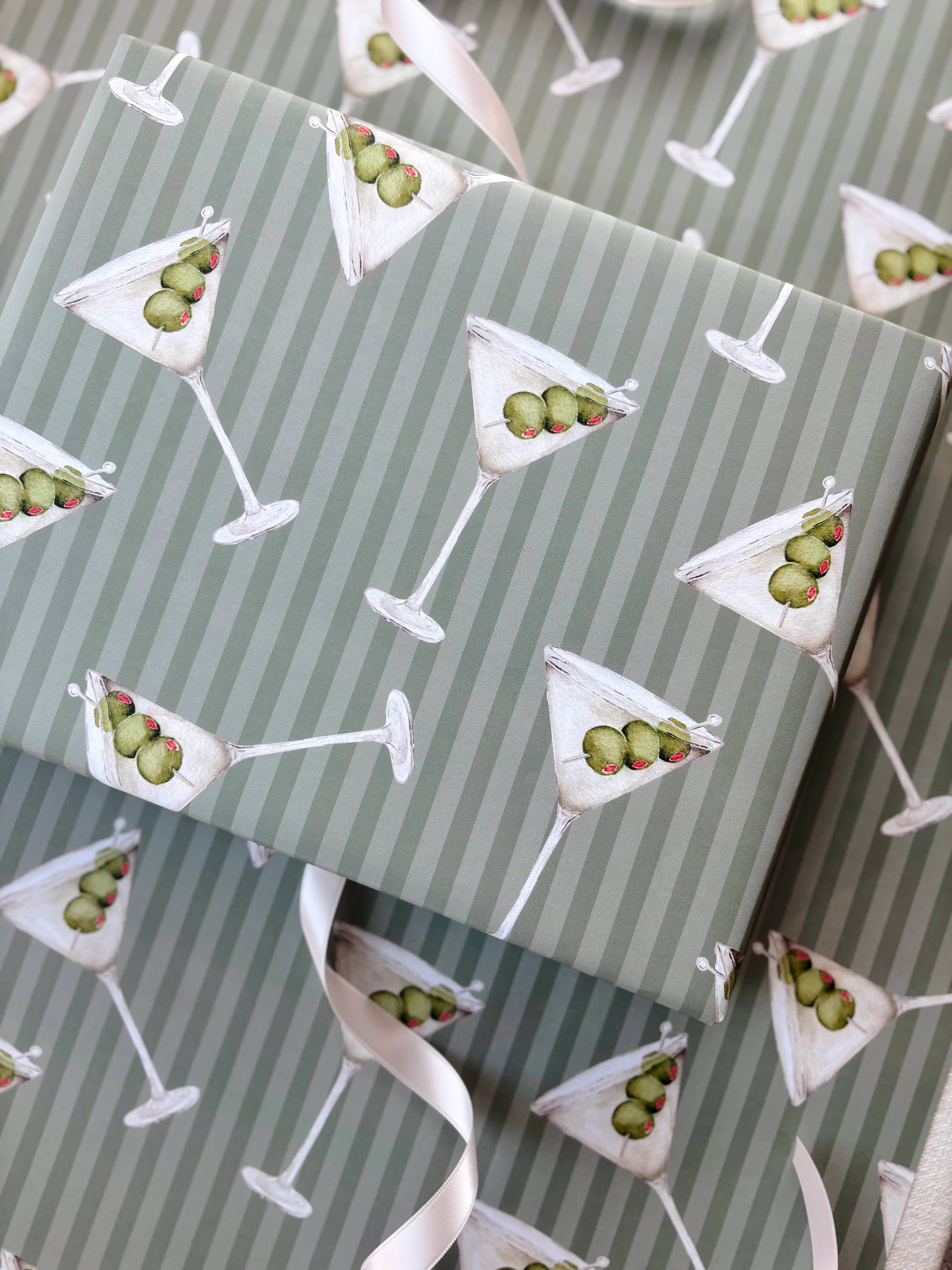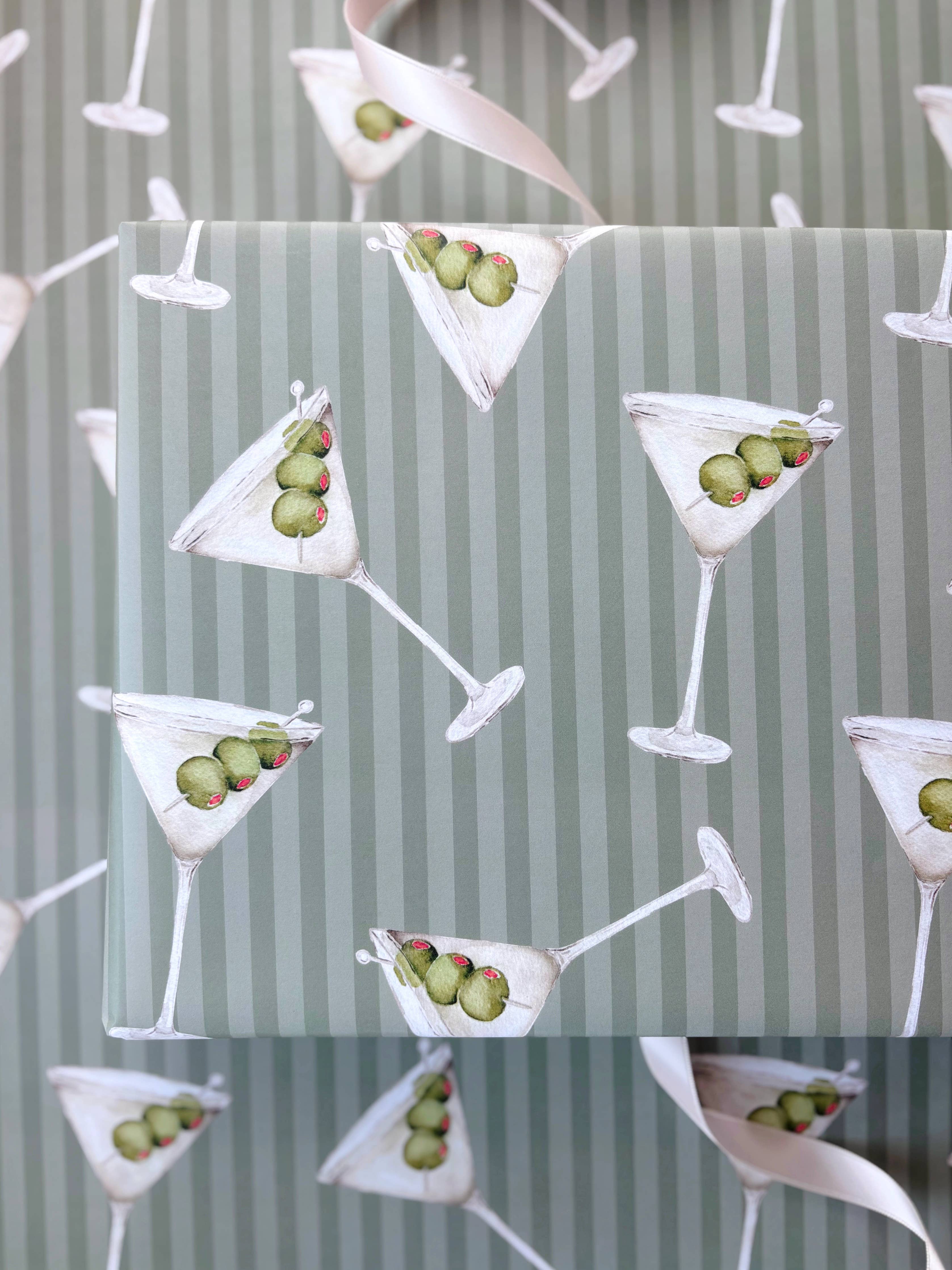 Watercolor Martini Gift Wrap - 3 Sheets/Roll