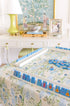 The perfect game table topper. Our game table topper is designed to fit a standard card table & is printed on heavy weight 100% cotton with 100% linen bias trim. The hand-illustrated Blue Pagoda design, painted in watercolor by artist Claire Ferguson exclusively for FF, adds a refined statement piece to your game table.
