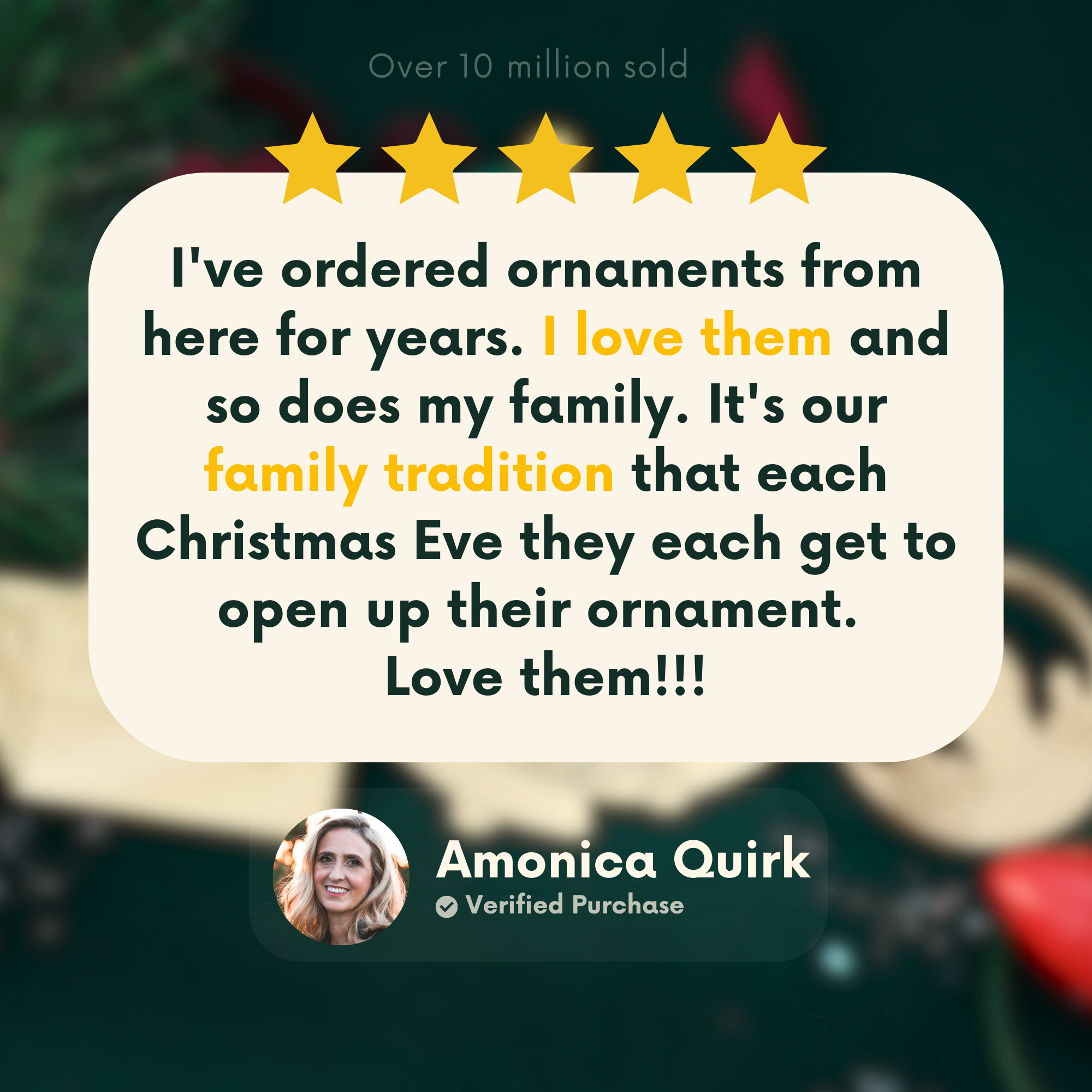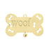 2126B Dog lovers, take note: our "Woof" Gold Plated Metal Ornament is the perfect way to honor your furry friend! This adorable bone-shaped ornament, crafted from gold-tone metal with smaller bone cutouts, adds a charming dog-inspired touch to any Christmas tree or as a gift for any pet lover. It features a sweet miniature bell. Personalize it easily with your dog's name, up to 10 characters, making it a thoughtful and unique gift for any dog lover in your life!